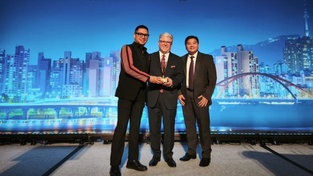From left to right: Christian Kelly Mata, Head of People Communications and Engagement at EastWest; Michael Gallagher, President and CEO of the Stevie® Awards; and Atty. Juan Alfonso “Alfie” Suarez, Chief People, Corporate Services, and Sustainability Officer at EastWest, receiving the Gold Stevie® Award for Excellence in Innovative Use of Technology in Human Resources during the 2025 Asia-Pacific Stevie® Awards held last May 13 in Seoul, South Korea.