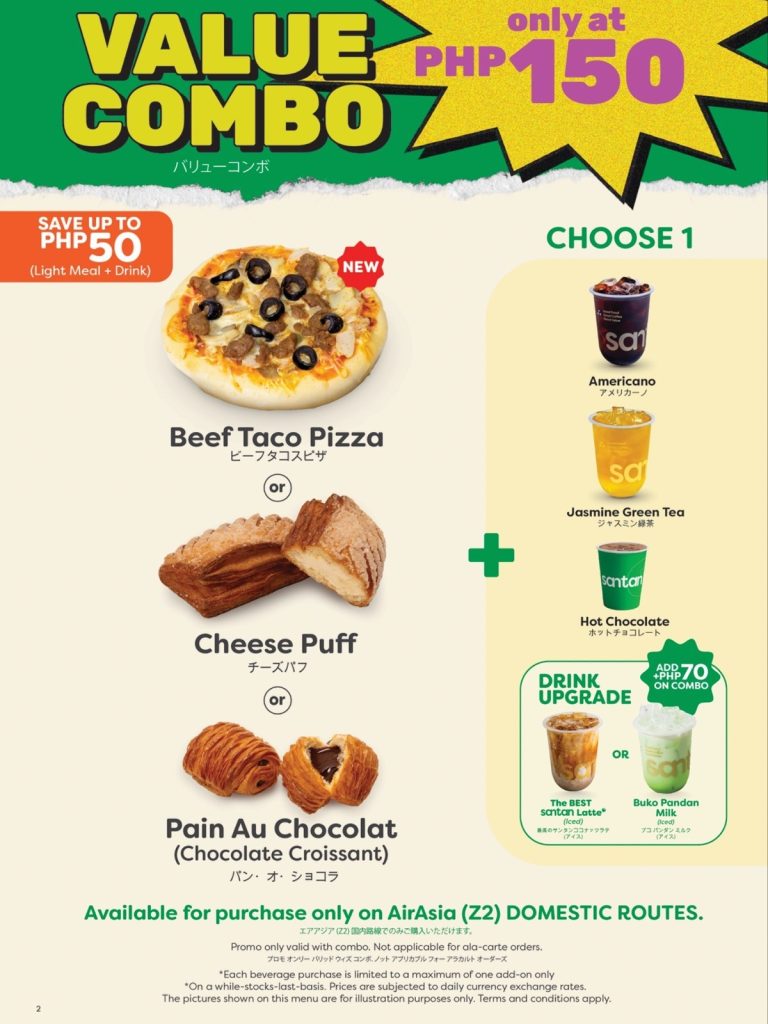 Santan meals remain affordable and accessible, with Value Combos starting at ₱150 and Hot Meal Combos at ₱320, available on select domestic routes.
