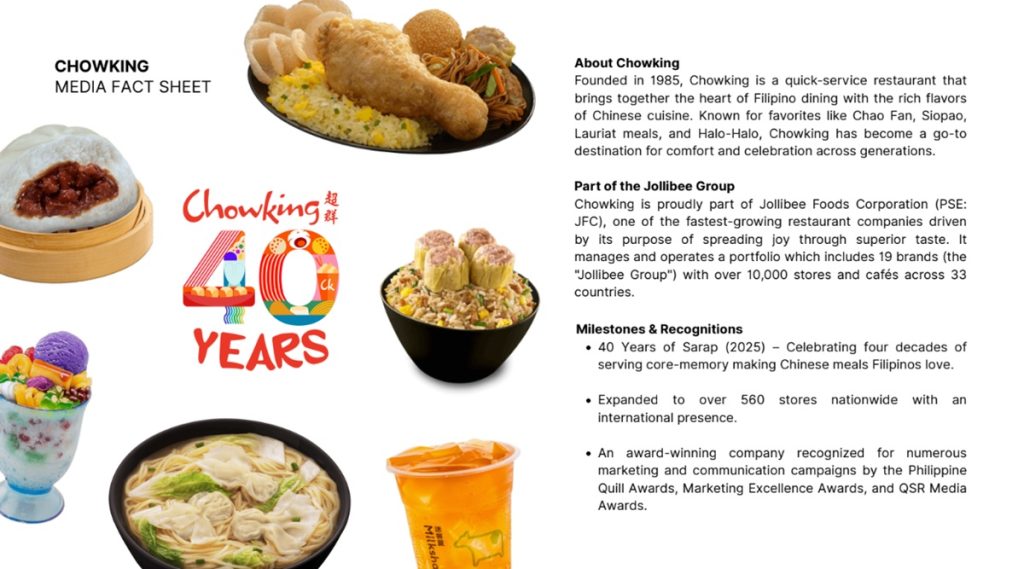 For forty years, Chowking has been part of the Filipino story — from family gatherings over siopao and halo-halo, late-night meals shared with friends, to comforting moments during life’s busiest seasons.