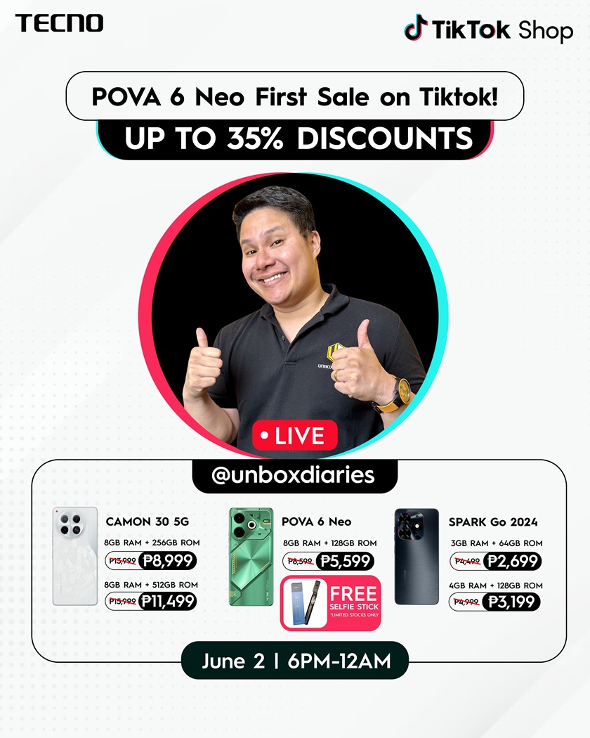 Vloggers and gamers have a lot to look forward to during the TECNO 6.6 sale this June. The event will be featured on the 6.2 Unbox Diaries TikTok Shop Live, as well as the Shopee 6.6 sale and the Lazada 6.6 sale. Customers looking to upgrade their mobile phones or treat themselves can enjoy significant savings on TECNO’s POVA 6, POVA 6 NEO, and CAMON 30 5G, all part of TECNO’s first-ever sale.