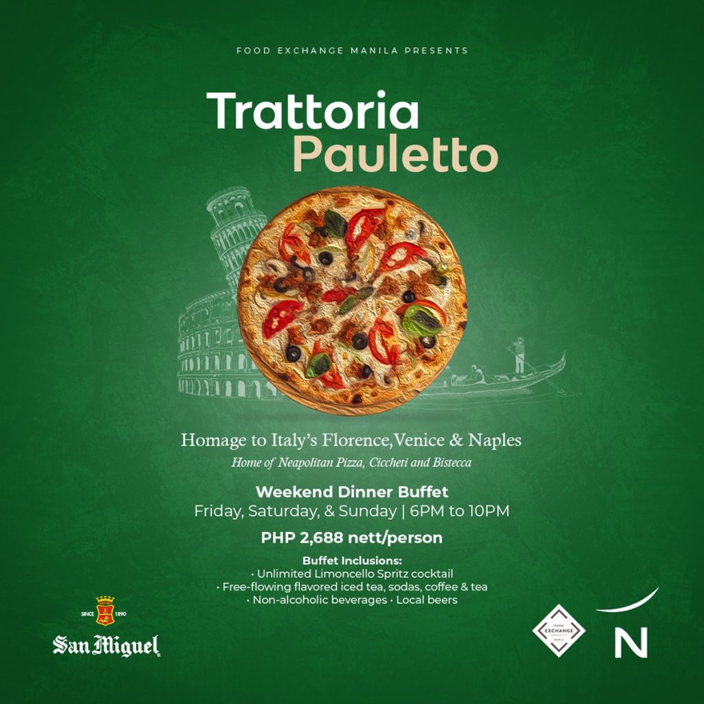 This season, Food Exchange Manila at Novotel Manila Araneta City invites food lovers to experience a full-sensory escape to Europe with two inspired culinary journeys — Trattoria Pauletto and Sailing Through Flavors of the Coast. Whether you’re craving the rustic charm of Italian classics or the coastal vibrance of the Mediterranean, each themed buffet promises a celebration of flavor, tradition, and culture on every plate.