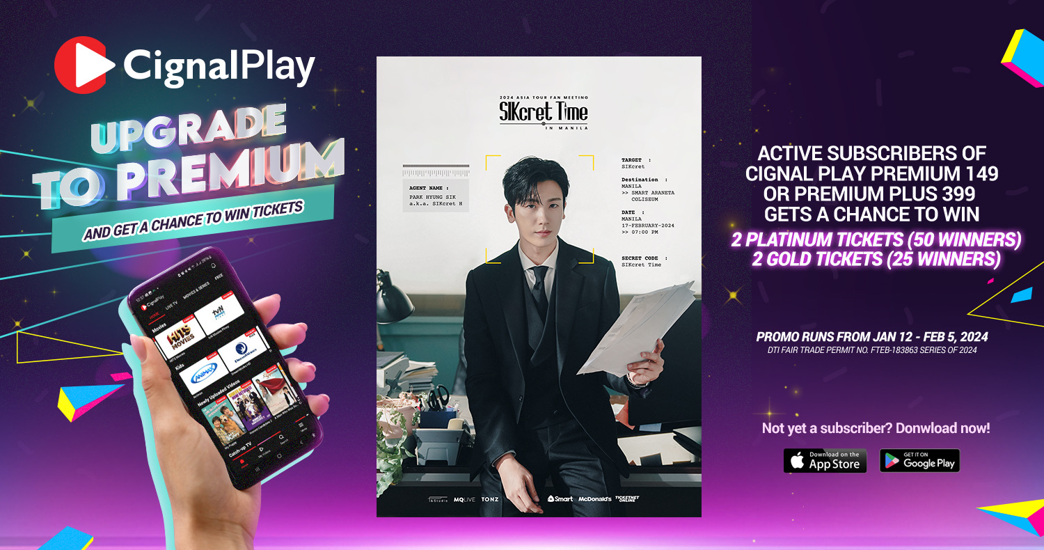 Cignal Play, the Live TV channels app by Cignal TV, Inc., has announced an exciting opportunity for its Premium and Premium Plus subscribers to win tickets to the highly anticipated fan meet, Park Hyungsik 2024 Asia Tour “SIKcret Time in Manila,” scheduled for February 17, 2024, at 7 PM in the Smart Araneta Coliseum.