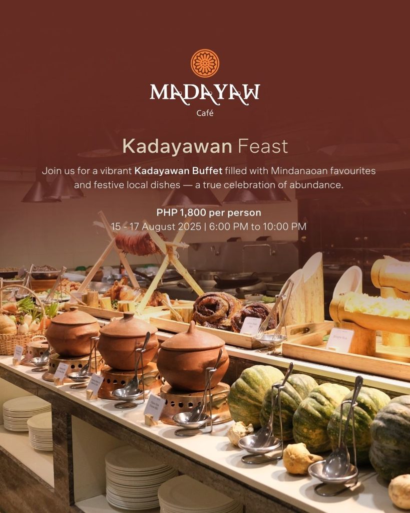 From August 15 to 17, Madayaw Café will present a Kadayawan Dinner Buffet brimming with flavors that celebrate Davao’s abundance. Drawing inspiration from regional culinary traditions, each dish is an invitation to savor, share, and connect over the season’s finest.