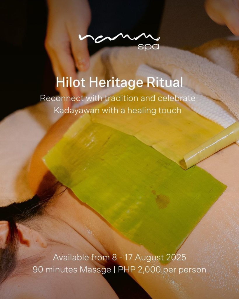 For those seeking relaxation and balance, Namm Spa offers the Hilot Heritage Ritual from August 8 to 17 at a special Kadayawan rate. This full-body massage, rooted in ancient Filipino healing traditions, restores wellness and calm amid the city’s lively celebrations.