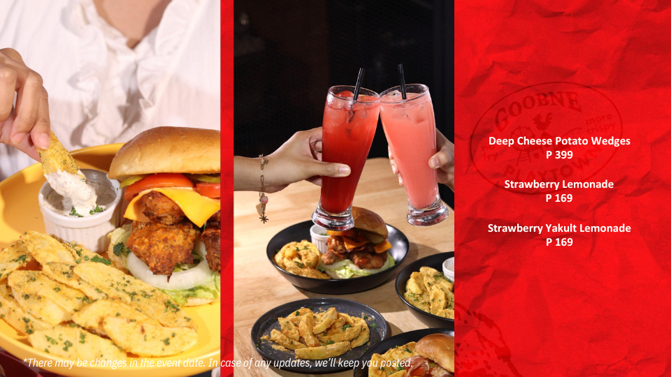 Its newest menu, Chicken Cheeseburgers paired with the Deep Cheese Potato Wedges, along its beverages, the Strawberry Lemonade and Strawberry Yakult Lemonade. These menus isn’t just a new take on the burgers, but gives its roasted chicken a new take by emphasizing on its flavorful, juicy chicken in a guilt-free, healthier burger. Its Deep Fried Potato Wedges compliments the burgers well, by providing a cheesy and savory taste on the potatoes perfectly paired with its newest beverages, the Strawberry Lemonade, and Strawberry Yakult Lemonade.