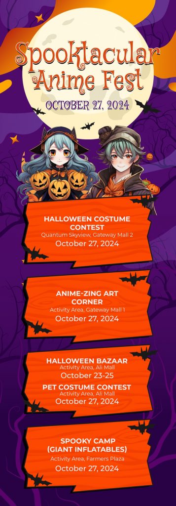 Here are the events and activities for a Spooktacular Anime Halloween Fest in Araneta City on October 27 (Sunday).