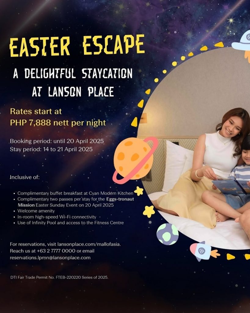 Get ready for an Easter celebration that’s truly out of this world! Lanson Place Mall of Asia invites families and adventurers to launch into a space-tastic holiday with the Eggs-tronaut Easter Egg Hunt Adventure, a special Holy Week Room Offer, and a cosmic Cyan Easter Lunch Buffet. With luxurious stays, intergalactic flavors, and fun-filled activities, it’s the ultimate Easter escape for all ages!