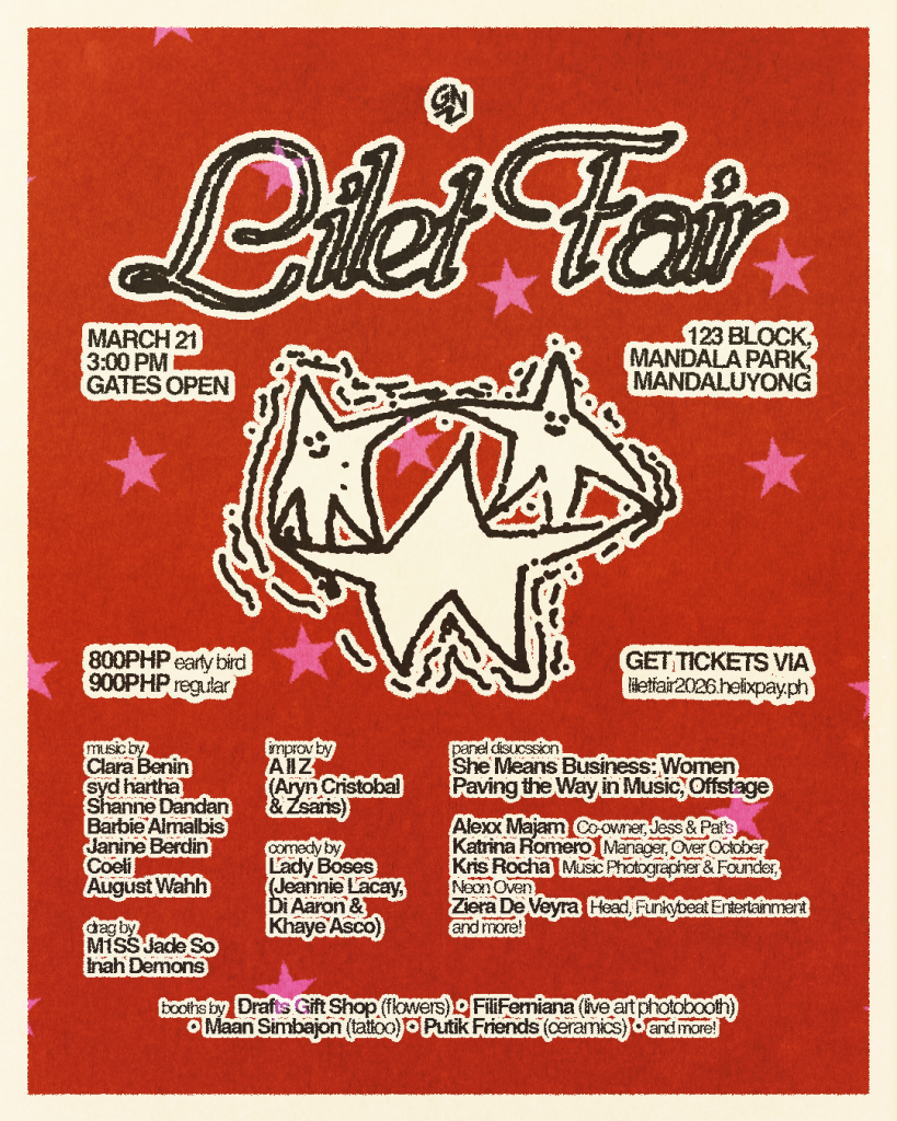 Lilet Fair will feature women-run creative booths, including Drafts Gift Shop (flowers), FiliFerniana (live art photobooth), Maan Simbajon (tattoo services), and Putik Friends (ceramics).