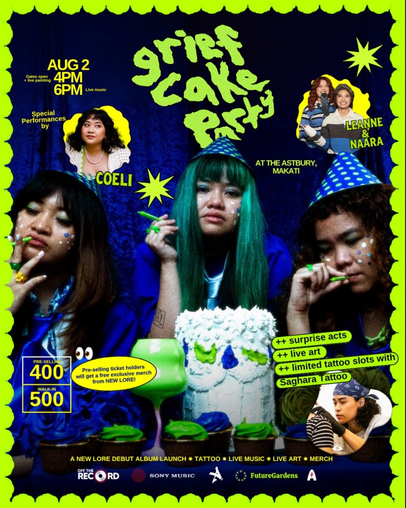 Alt-pop trio NEW LORE is set to drop their debut album grief cake on August 1, 2025—a bold, emotionally charged 8-track journey that transforms heartbreak into healing, and sorrow into song. The celebration kicks off the following night, August 2, with an immersive launch party at The Astbury, Makati that promises live music, live art, tattoos, and a community of feelers ready to turn grief into glitter.