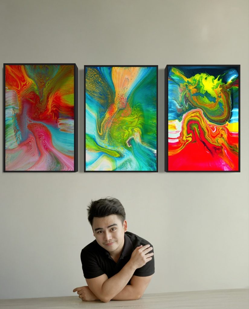 Rendered in acrylic with Lorenzo’s meticulous fluid art manipulation using glue and resin, the paintings pulsate with movement, depth, and sentiment. The swirling hues and intricate patterns reflect the organic and ever-evolving nature of a mother’s love—fluid yet enduring, delicate yet strong. Through this technique, Lorenzo captures the intangible: the gentle cadence of a lullaby, the protective embrace of a mother’s arms, and the sacred sanctuary of the womb that first nurtured life.