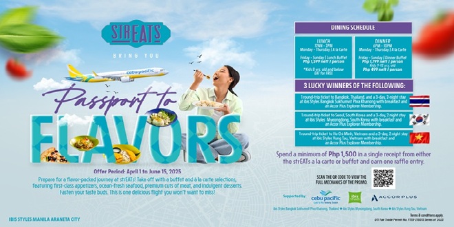 Foodies and travel lovers, get ready to indulge your senses! ibis Styles Manila Araneta City invites you to Passport to Flavors—a unique culinary adventure happening from April 1 to June 15, 2025 at strEATs Restaurant, 5/F Gateway Mall 2.