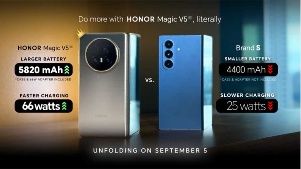 “The HONOR Magic V5 doesn’t just raise the bar in design – it revolutionizes power,” said Stephen Cheng, Vice President of HONOR Philippines. “With its 66W Wired Charging, the HONOR Magic V5 outpaces competitors stuck at 25W, ensuring users stay charged throughout their day. Plus, it comes complete with a durable phone case and charger, which many other brands exclude.”
