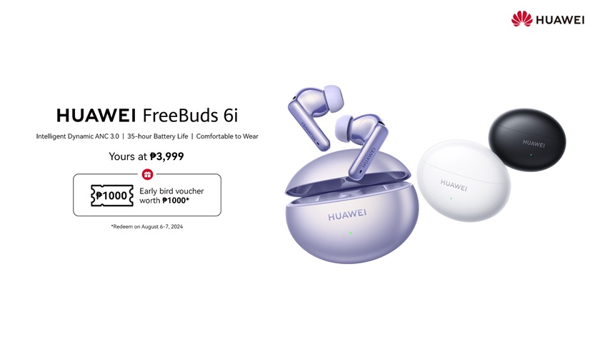 Elevate your listening experience with the HUAWEI FreeBuds 6i, now available for PHP 3,999 on Shopee, Lazada, the HUAWEI Online Store, and at HUAWEI Experience Stores nationwide. From July 30 to August 7, 2024, collect vouchers to enjoy PHP 1000 off with no minimum spend. Please note that voucher redemption is only available from August 6 to August 7, 2024.