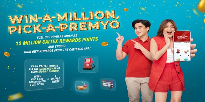 Caltex, under Chevron Philippines Inc. (CPI), unveils its national promotion for 2024: the Caltex Win-a-Million, Pick-a-Premyo Promo. Caltex Rewards members have the chance to win up to 12 million points, which can be exchanged for various rewards such as Caltex fuel, dining, shopping, or groceries.